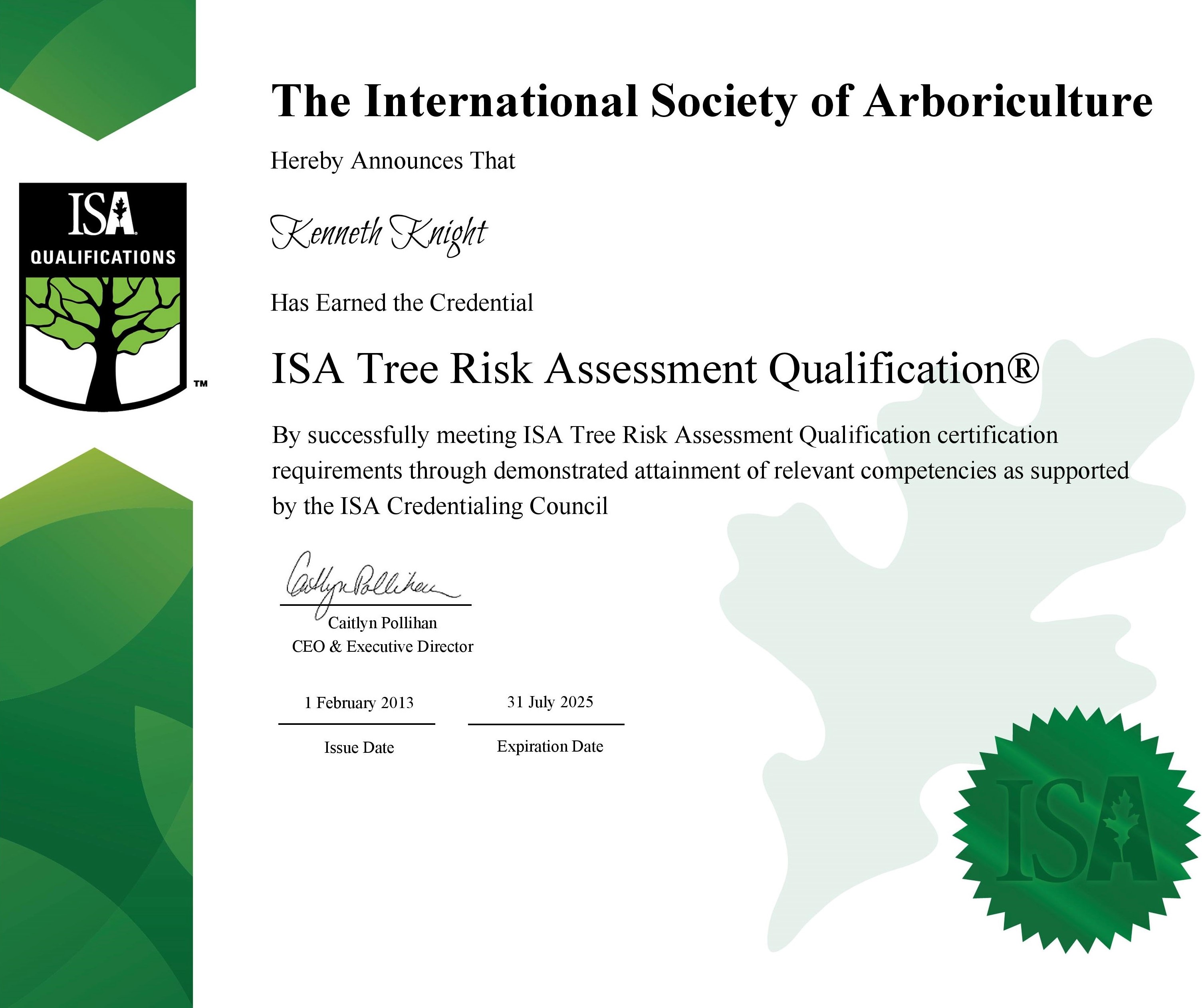 My ISA Qualification in Tree Risk Assessment and experience can provide homeowners, businesses, insurance agents and anyone living near trees with the latest best management practices in identifying risks associated with your trees and how these risks can be mitigated and managed.